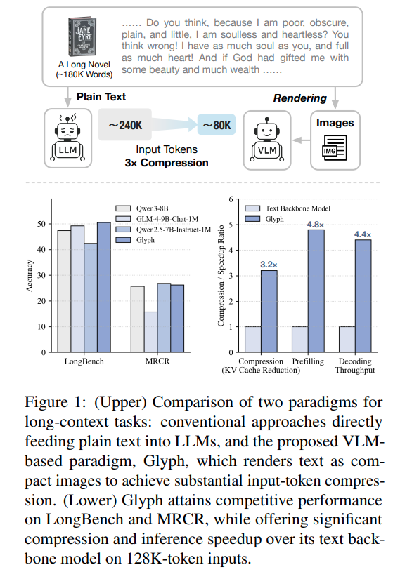 智谱看到了 DeepSeek-OCR 大爆,然后自己手上又有一个相似故事的论文,连夜开源论文和代码 Glyph: Scaling Context Windows via Visual-Text Compression